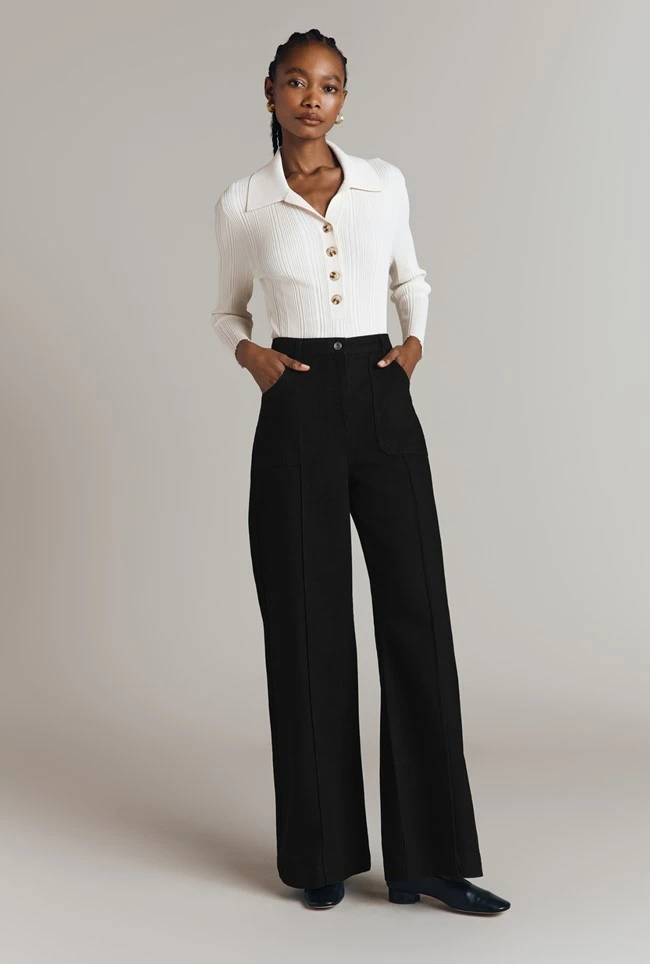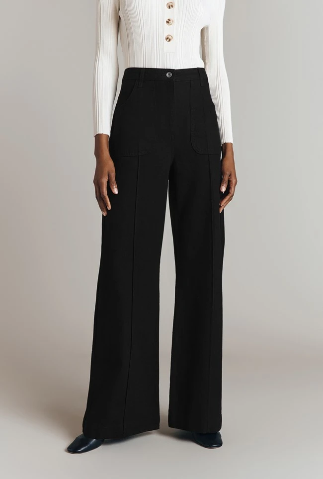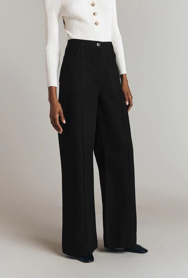 - A great pair of black wide-leg jeans is an essential in every wardrobe. Our full-length Astra style is flatteringly high-waisted, with shaped patch pockets and front seam detailing, giving them an elevated feel. Button and zip fly fastening.