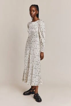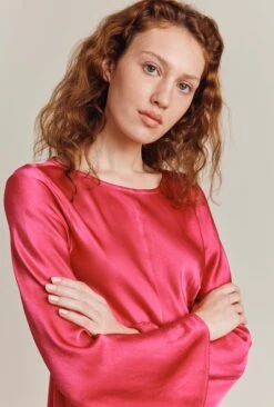 Clemence is a midi-length dress that features a mock wrap bust, creating a flattering silhouette that accentuates your curves. The shirred and ruffled cuffs bring a playful, feminine vibe. Crafted from high-quality heavy satin, this dress drapes beautifully and feels luxurious to the touch. Whether you’re attending a wedding, dinner party, or hitting the shops, Clemence will ensure you feel confident and stylish.
