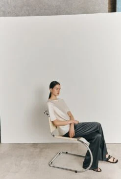 Vintage-like in silhouette and style, the Delphine is a beautiful design. Cut into a gentle V-neck, its button-through front gives way to a split to create movement whilst walking and to showcase your choice of shoes. Gathered detail around the shoulders and under the bust adds to its feminine appeal. Made from heavy satin fabric obtained from sustainable sources, it is cut on the bias.
