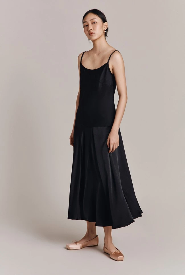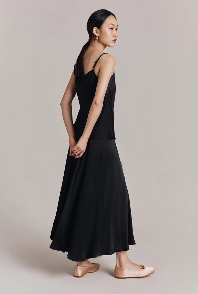 - Crafted from our signature sustainable EcoVero satin, this minimalist black satin cami top is bias-cut for a flattering drape and features delicate adjustable spaghetti straps that allow you to customise the fit. The perfect partner to our Poppy skirt.