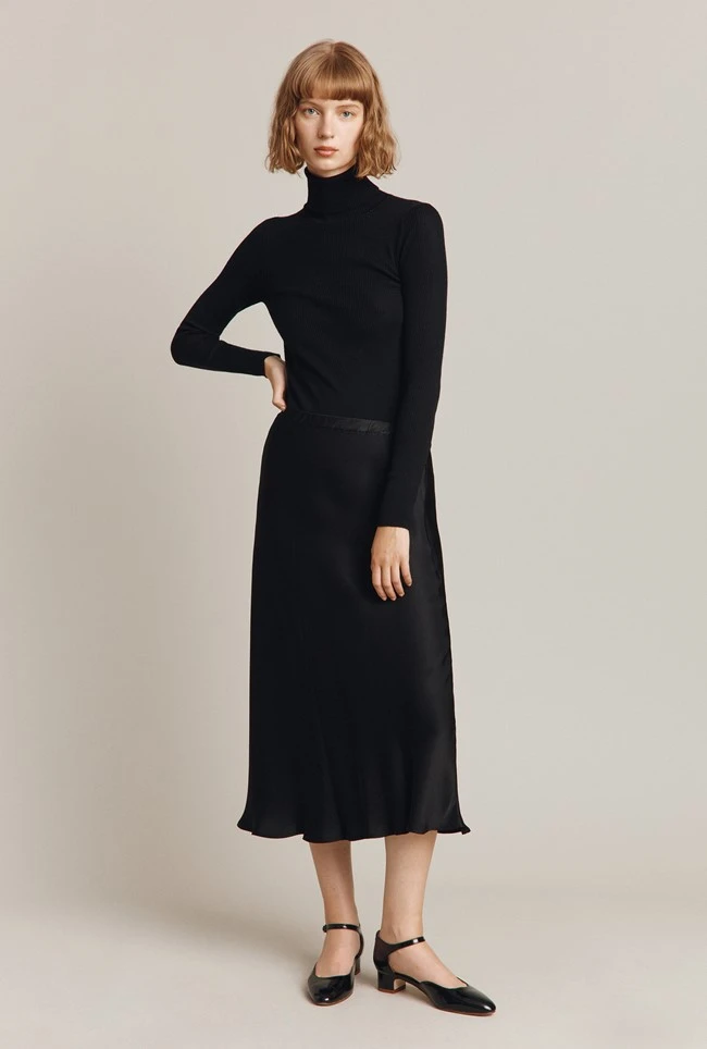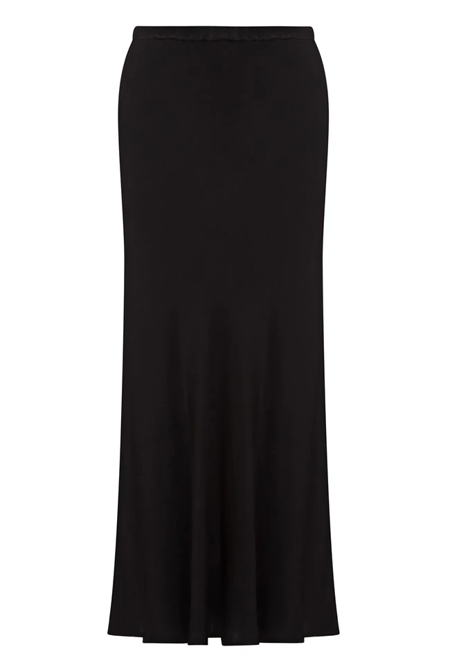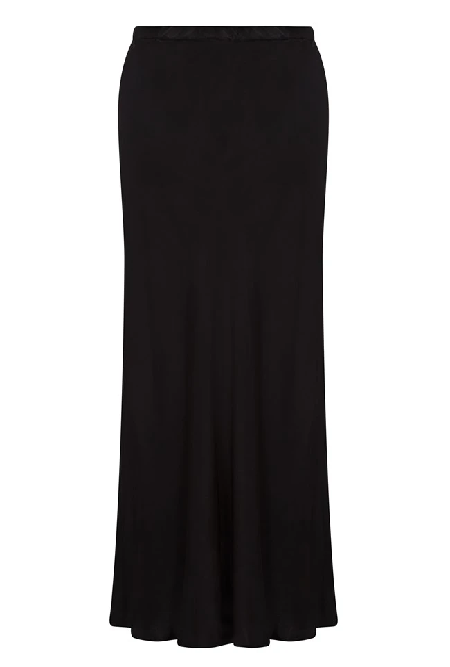 If you only have one skirt in your wardrobe, make it Luna. A true classic, this simple black skirt is cut on the bias in a midi length and crafted in garment-dyed satin so it falls fluidly over the body to create a flattering, form-fitting silhouette. A subtly elasticated waistband ensures comfort. Dress up with a satin camisole and heels, or down with a simple tee, denim jacket and trainers – versatility is Luna’s superpower.