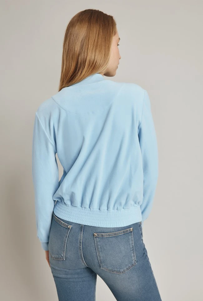 Velour Zip Track Top Cornflower Blue